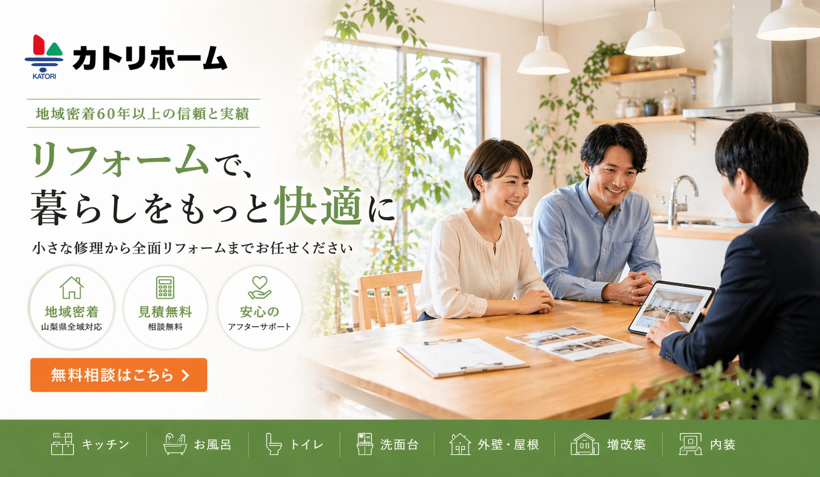 山梨(甲府、河口湖、富士吉田、笛吹、甲斐、大月、都留)でリフォームならカトリホーム