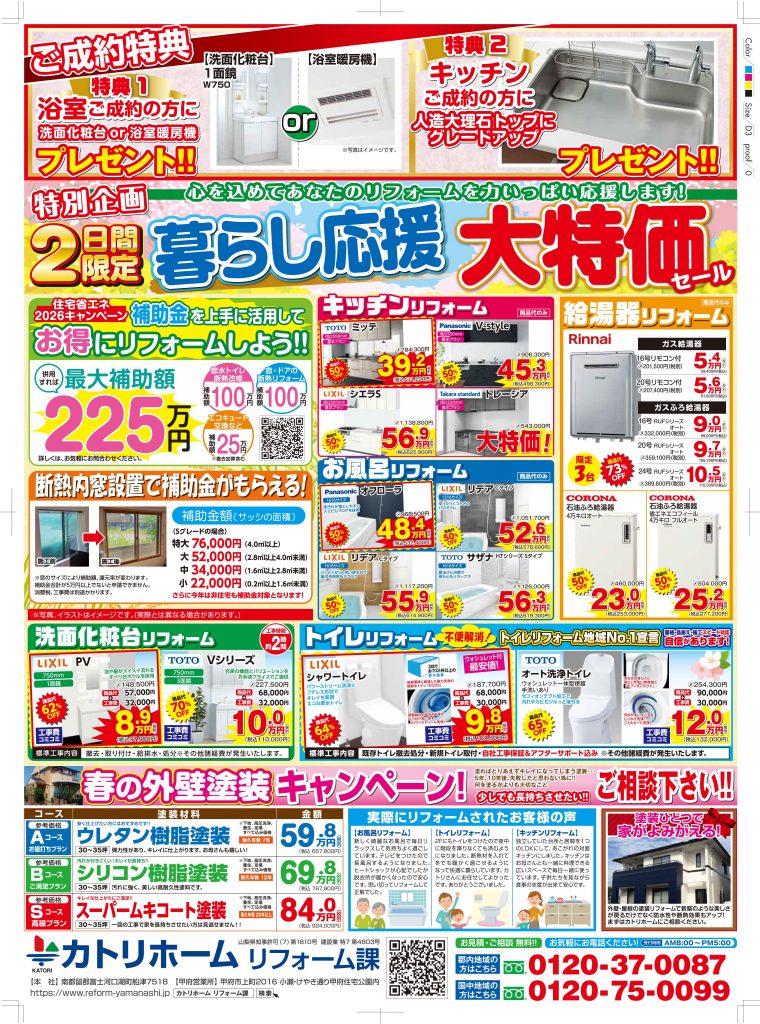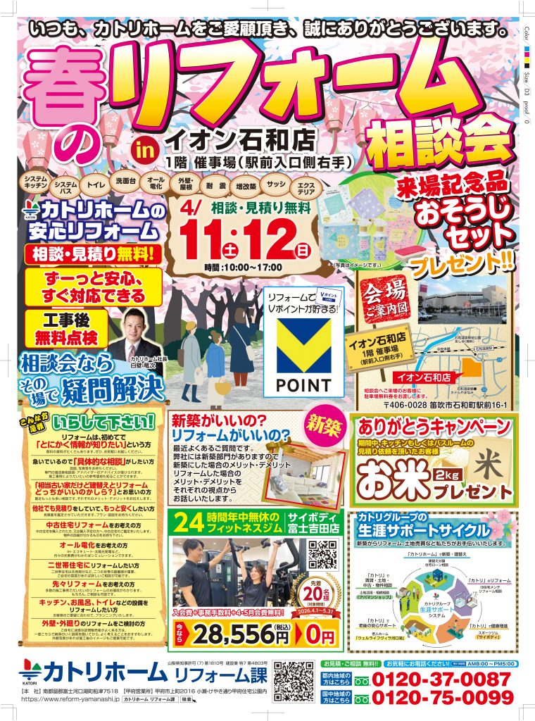 4/11.12春のリフォーム相談会開催【笛吹&富士吉田】同時開催 来場記念品プレゼント♪