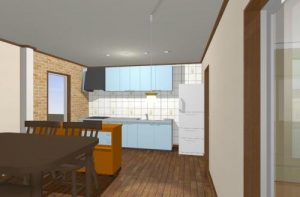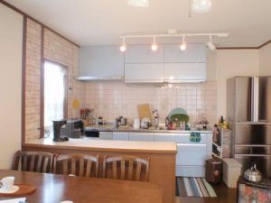 クロスを一部レンガ調のものをつかい、照明器具もスポットライトに変えました。