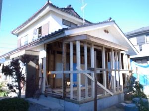 お客様が生活をしている中での改修工事ですので、ご不便掛ける期間を短くする為、増築部分を先行し、工事期間中は仮設の台所を車庫に設置し、対応して頂きました。 担当:須々木