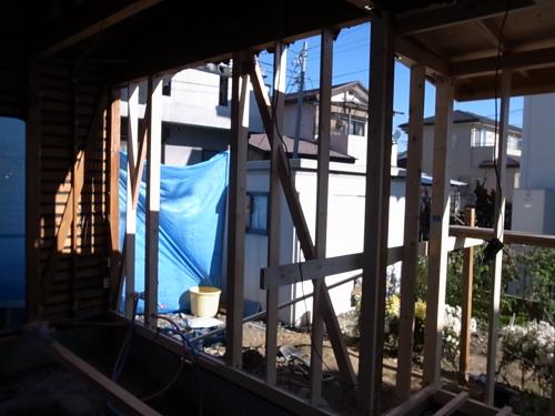 外壁工事に伴い、耐震を考慮し、筋カイを増設