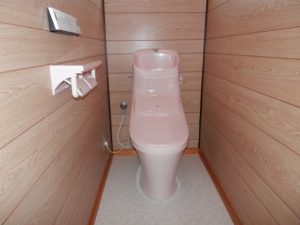 暑い日が続きます。 リフォーム工事もこの暑さで大変ですが、お客様がエアコンや扇風機などを回してくださったり冷たい飲み物を用意していただいたりとありがたいです。 そんな中で都留市にてトイレの交換です。 まだ使用できますがチラシを見て連絡いただきました。 以前にもキッチンの交換をさせていただいた事もありうれしい限りです。 ピンクからピンクの便器に変更で床もCFシートを張り明るい感じになりました。 毎日使用するものだからキレイでいたいと思います。 三浦