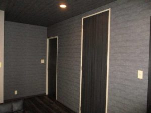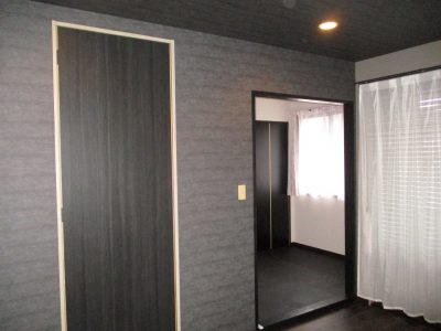 壁紙を貼替して床はフローリングの上からフロアータイルを張りました。
