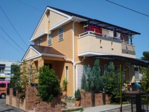 塗装前の写真です 外壁と屋根を塗装してかなりキレイになりました。 オレンジ系の暖色でまとめて暖かな、そしてカワイイ仕上がりです。 お客様もイメージ通りで大満足です。