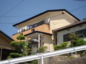 小高い坂の上のお宅。 玄関を広くする事により、家にゆとりが生まれます。 玄関戸も新しくする事により防犯性も上がりますし、家の顔というだけあって家の印象が変わります。 外壁や屋根も明るい色に塗り替えて、華やかになりました。 ベランダ部分の色を1トーン落とすことにより、外壁にアクセントを加えました。